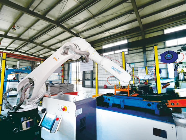 ·成品托盤(pán)自動(dòng)計(jì)數(shù)、機(jī)器人碼垛、單絲雙股自動(dòng)捆扎。