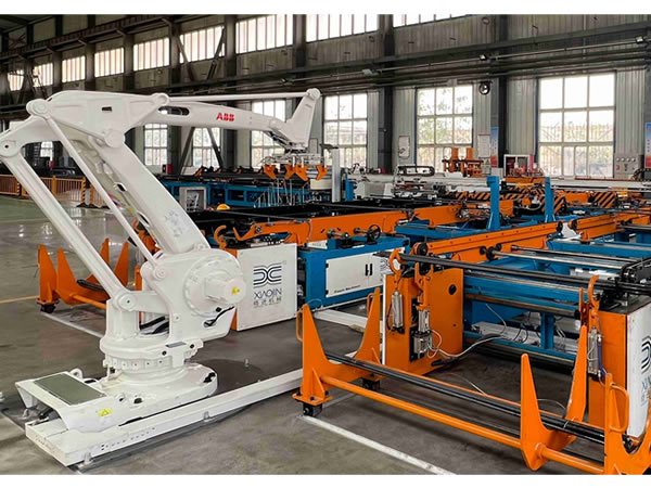 該生產(chǎn)線從原料的自動上料、自動集料排序、多根定尺裁斷、斜角裁斷、組合式縮徑、液壓滾絲、防偽打標、讓壓管和組合墊自動旋裝、自動上母、鉆孔栽銷、蛇形沖壓、智能分檢、計數(shù)捆扎、成品碼垛實現(xiàn)了錨桿全自動化的生產(chǎn)模式。該條生產(chǎn)線彌補了傳統(tǒng)錨桿生產(chǎn)各個環(huán)節(jié)分離的缺憾,大大降低了勞動強度,提高了生產(chǎn)效率和產(chǎn)品質(zhì)量,實現(xiàn)了錨桿產(chǎn)品安全生產(chǎn)的需求,推進了錨桿生產(chǎn)行業(yè)邁向全自動化生產(chǎn)的新時代。